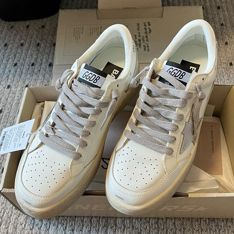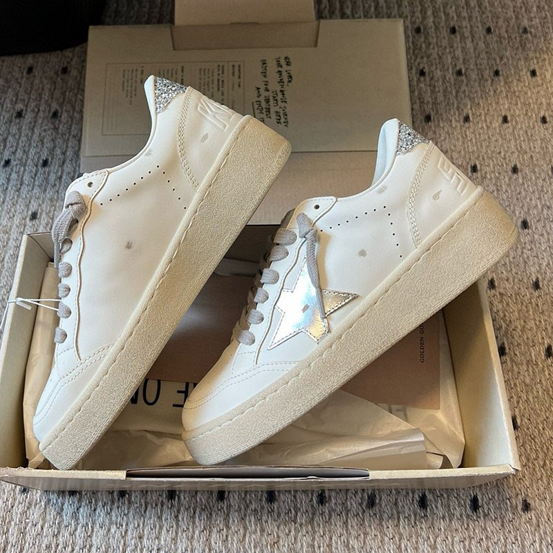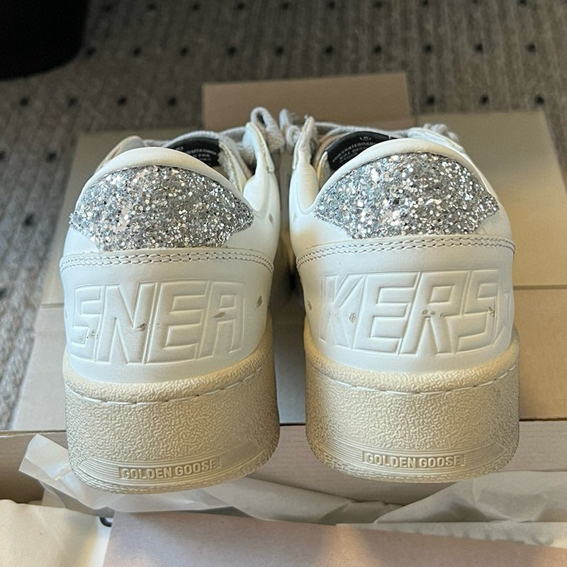 Ball-Star with silvery matte cowhide star and silvery matte cowhide leather heel