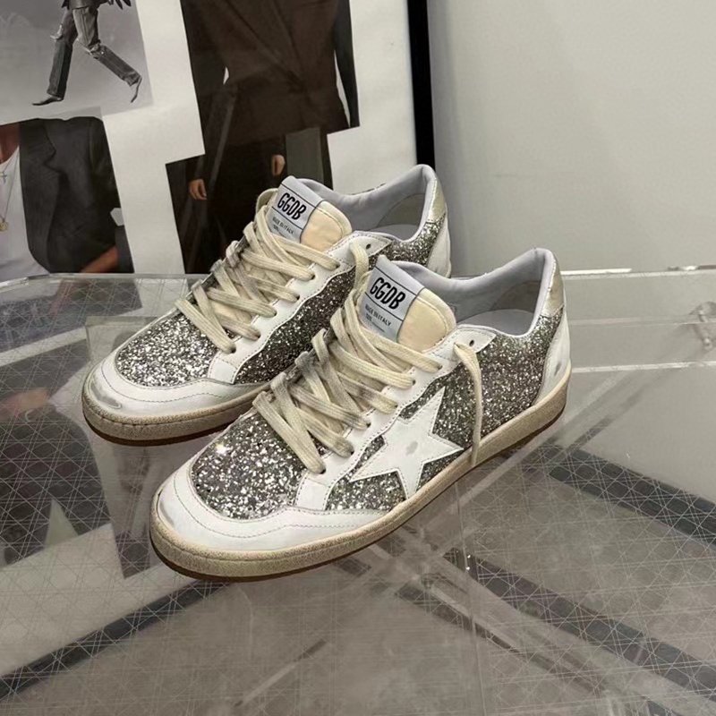 Ball-Star with white fabic star and black matte cowhide leather heel