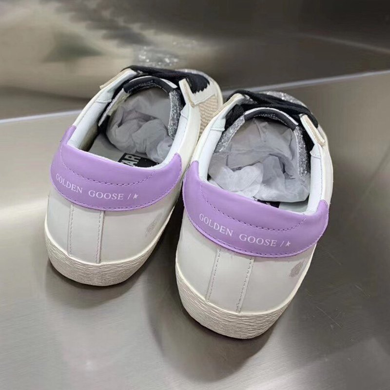Super-Star with blue suede leather star and black matte cowhide leather heel