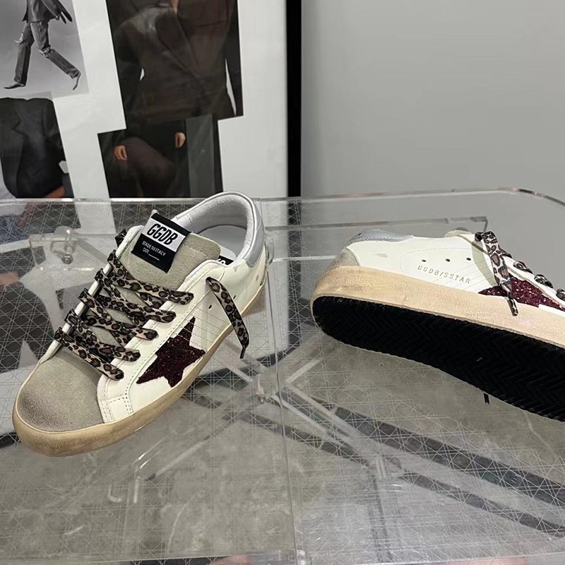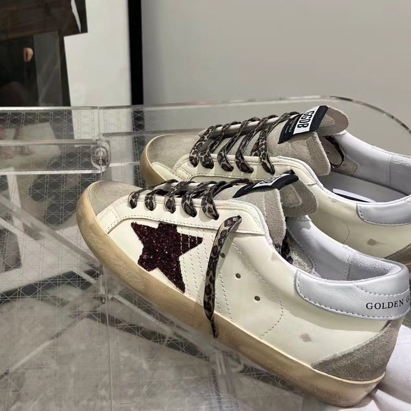 Super-Star with golden matte cowhide star and black matte cowhide leather heel