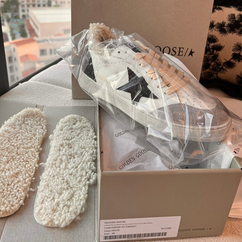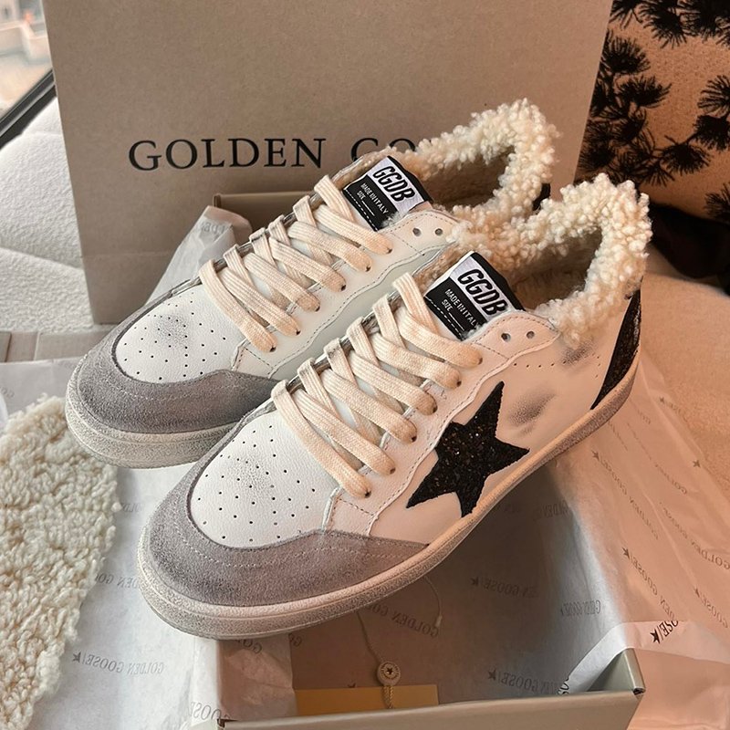 Ball-Star with white matte cowhide star and silvery matte cowhide leather heel