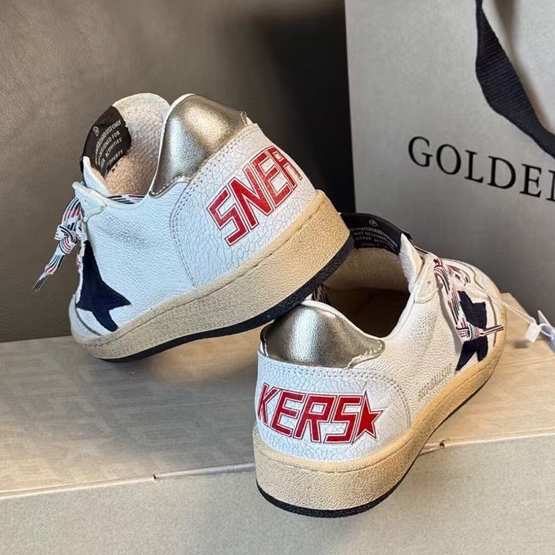 Ball-Star with white matte cowhide star and black matte cowhide leather heel