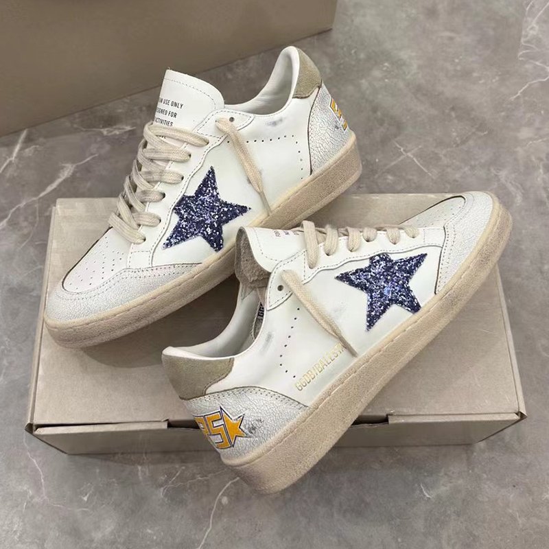 Ball-Star with golden matte cowhide star and silvery matte cowhide leather heel