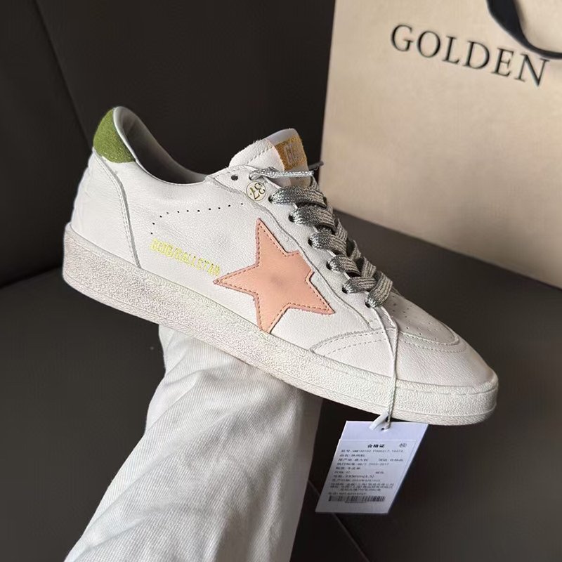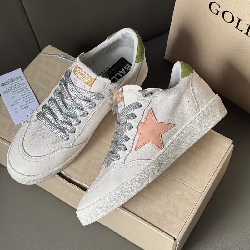 Ball-Star with pink matte cowhide star and green suede leather heel