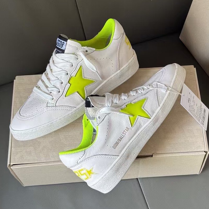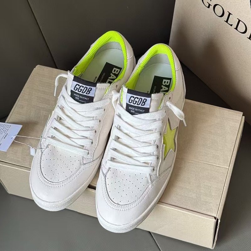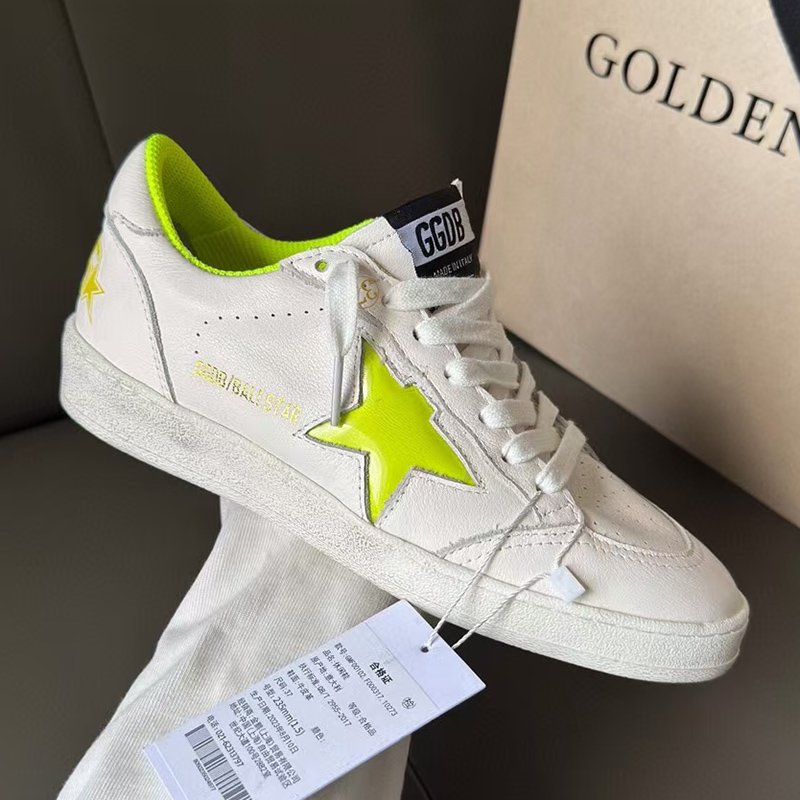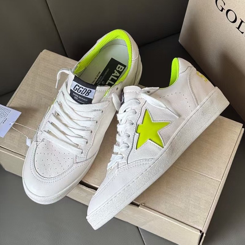 Ball-Star with yellow fabric star and white matte cowhide leather heel