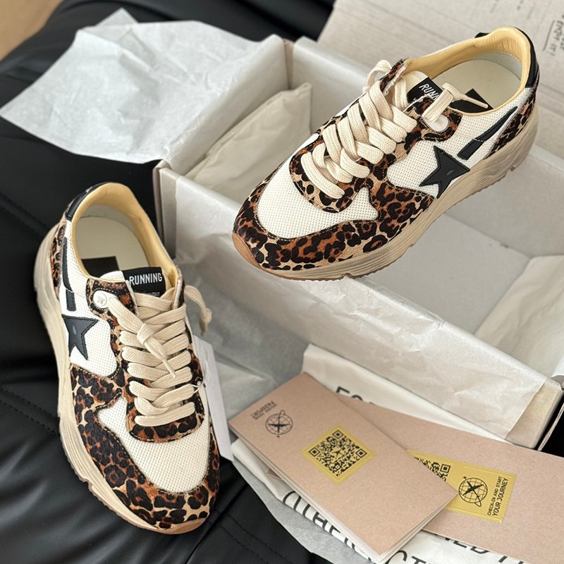 Running sole with black matte cowhide star and black matte cowhide leather heel