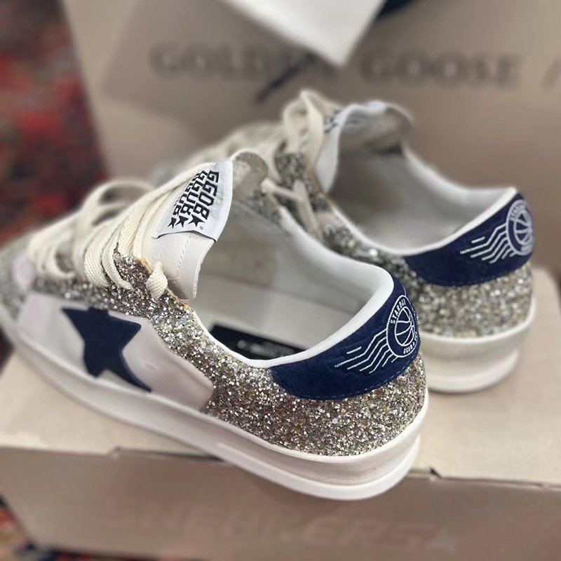 Stardan with dark blue matte cowhide star and dark blue matte cowhide leather heel