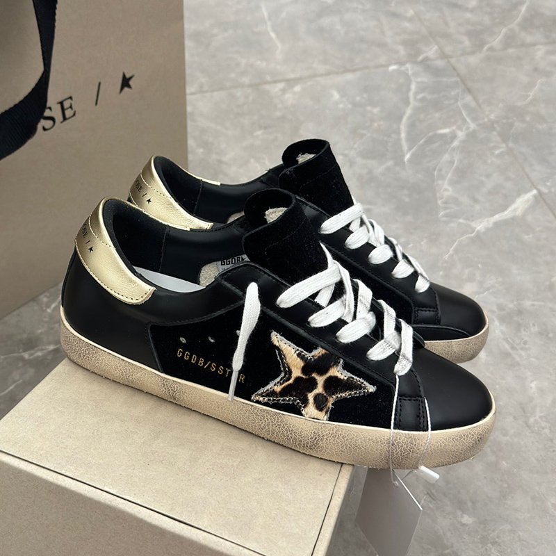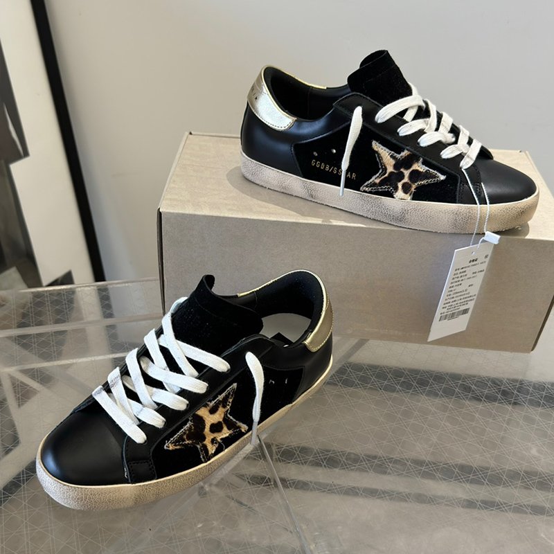 Super-Star with leopard print star and golden matte cowhide leather heel