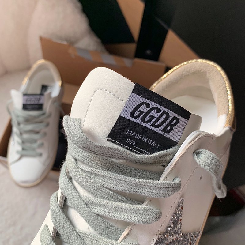 Super-Star with black suede leather star and silvery glitter heel