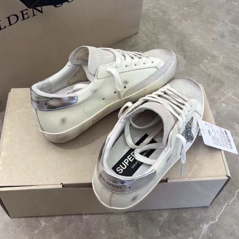 Super-Star with pink matte cowhide star and silvery matte cowhide leather heel