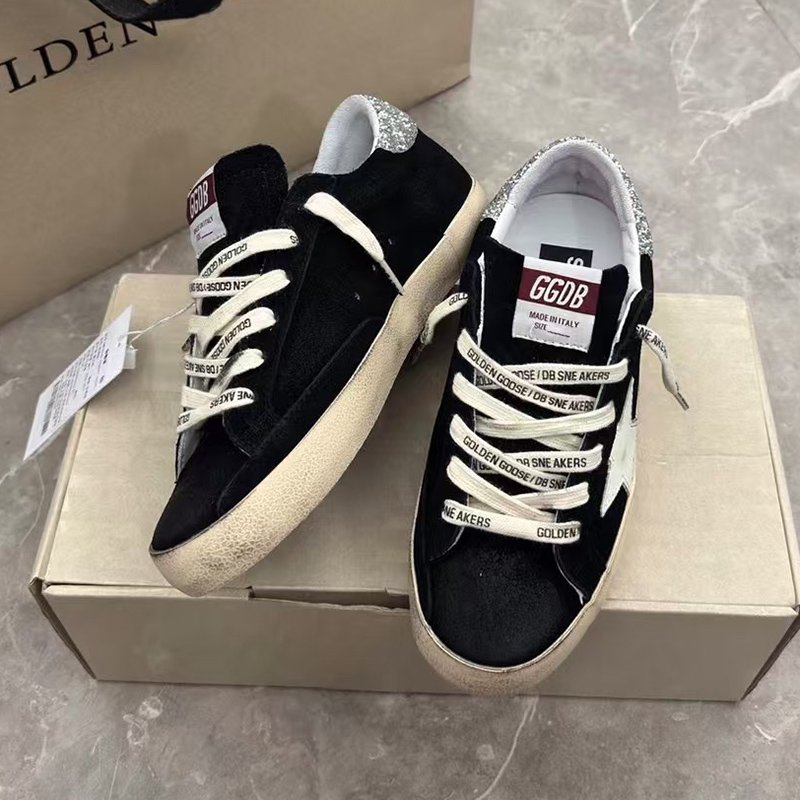 Super-Star with grey suede leather star and black matte cowhide leather heel