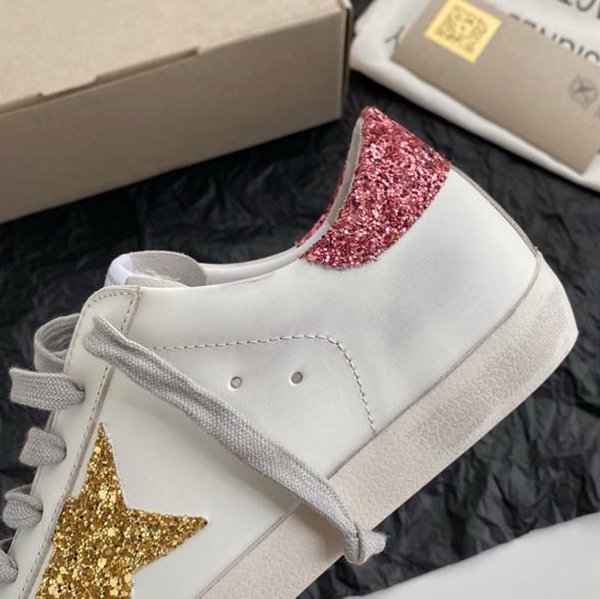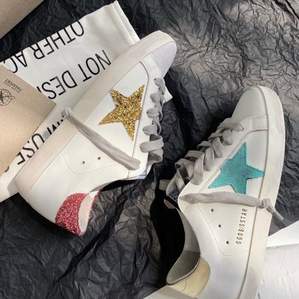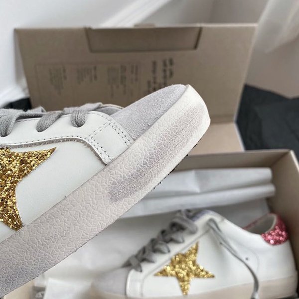Super-Star with silvery matte cowhide star and white matte cowhide leather heel