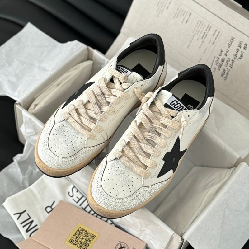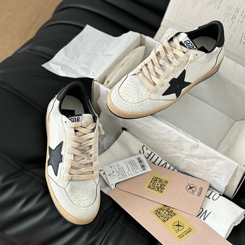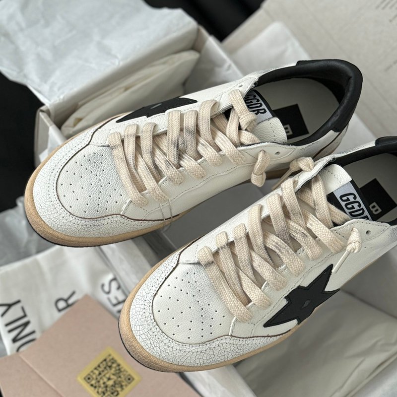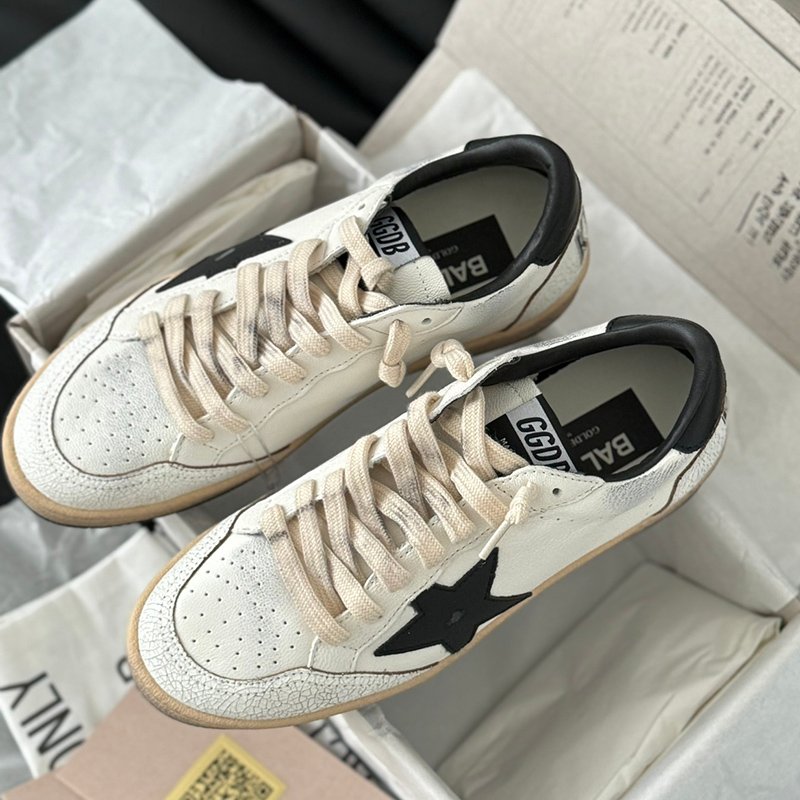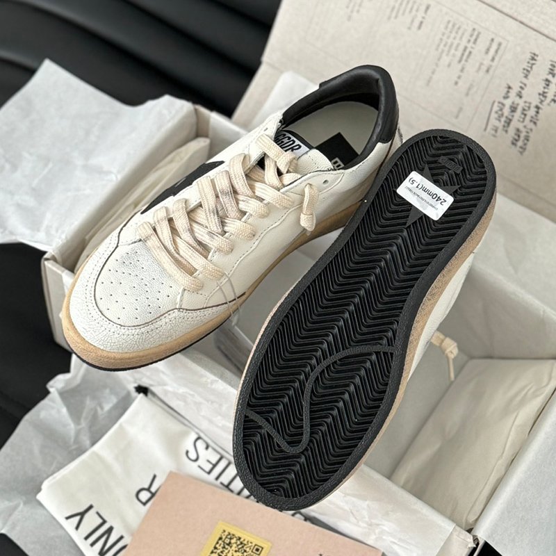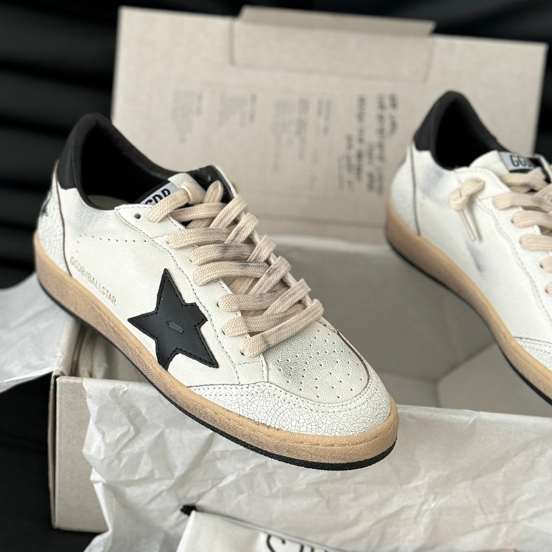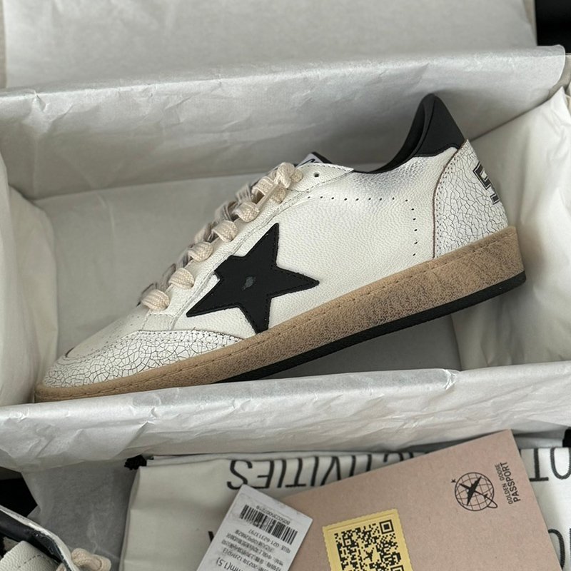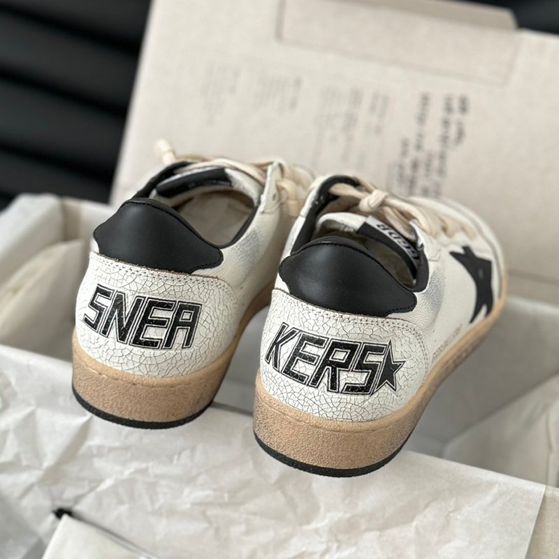 Ball-Star with white matte cowhide star and black matte cowhide leather heel