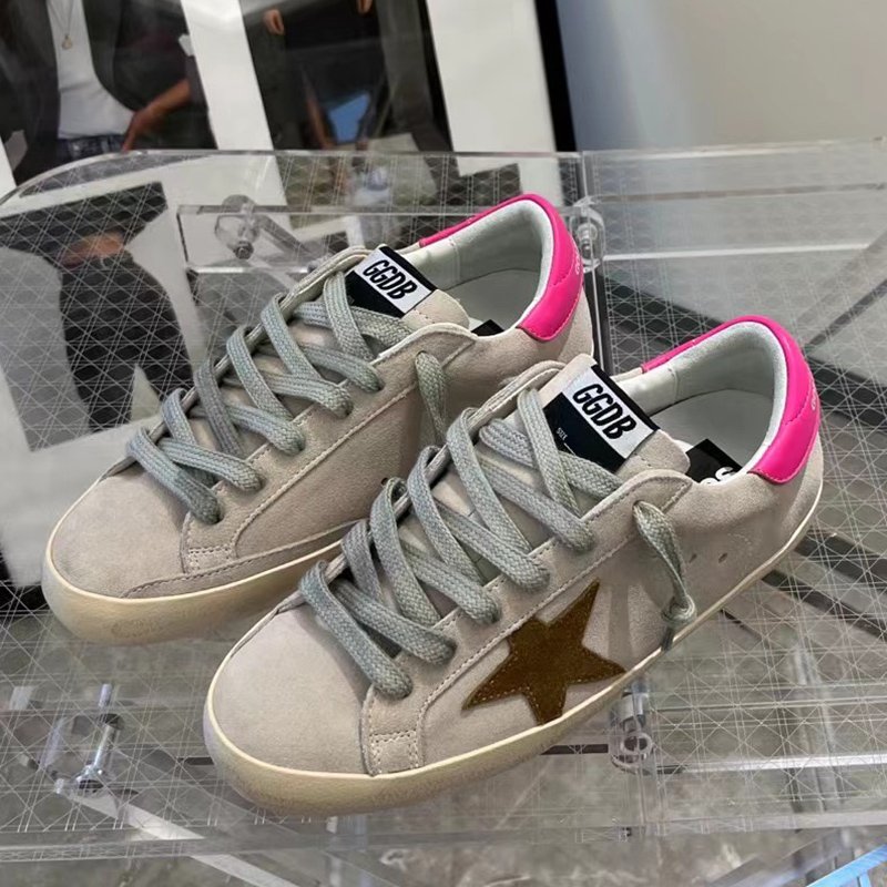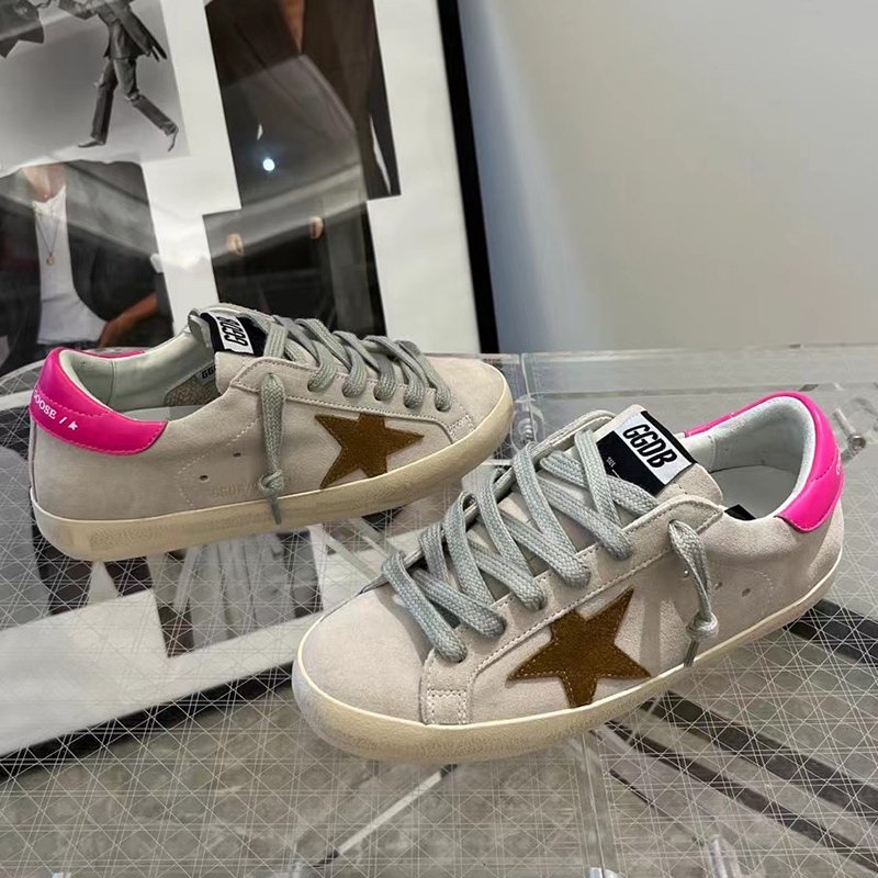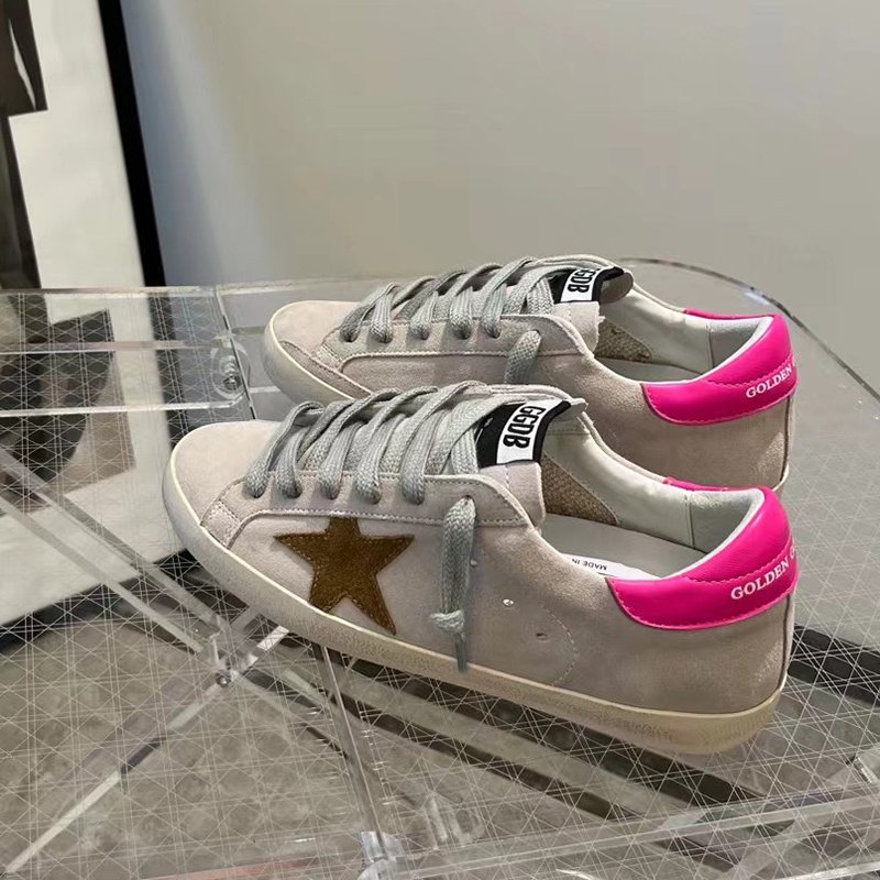 Super-Star with brown suede leather star and pink matte cowhide leather heel