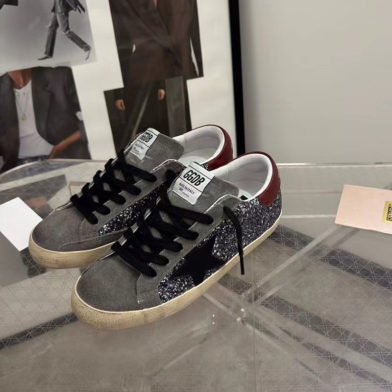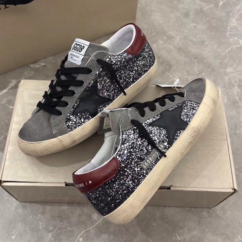 Super-Star with silvery matte cowhide star and silvery matte cowhide leather heel