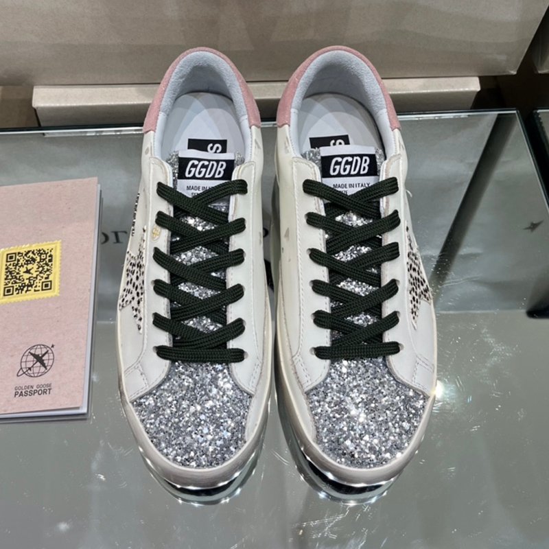 Super-Star with white matte cowhide star and black matte cowhide leather heel