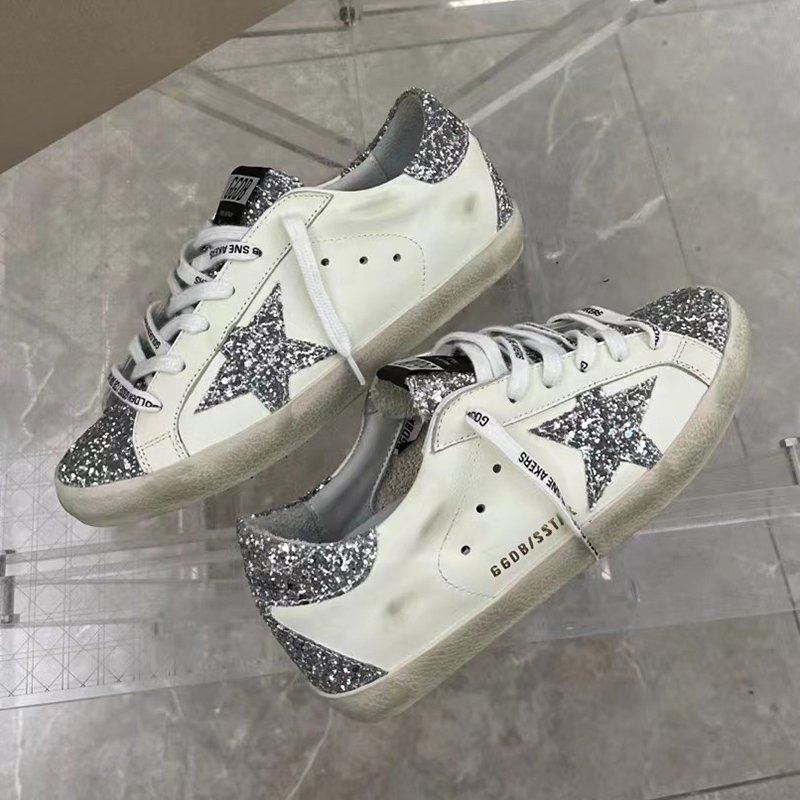 Super-Star with silvery matte cowhide star and golden glitter heel