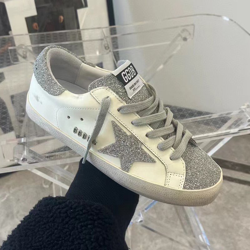 Super-Star with silvery glitter star and silvery matte cowhide leather heel
